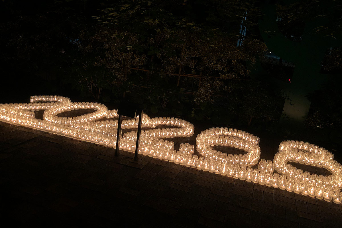 There are many office buildings in the vicinity, but every year during this candle night, the companies in each building dim their lights to create total darkness.