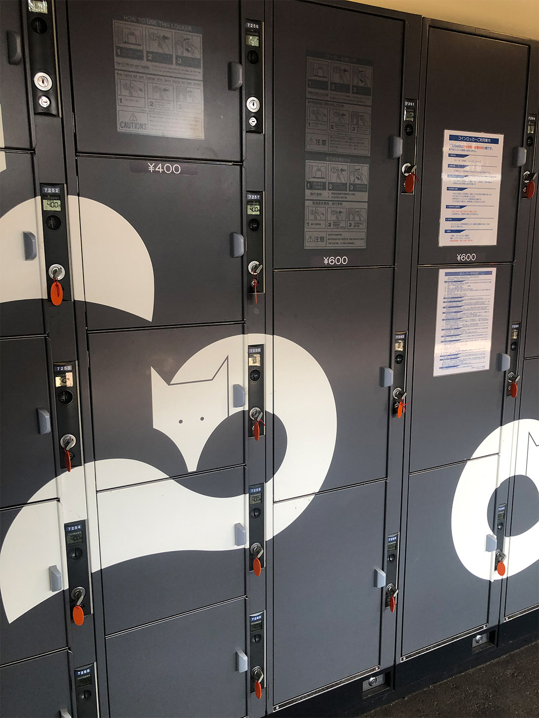 The coin-operated lockers also had cute illustrations of foxes on them.