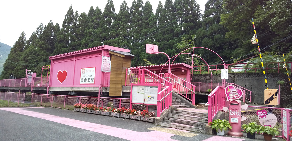 Koi Yamagata Station(恋山形駅), located in Tottori Prefecture, is painted pink throughout the station.
