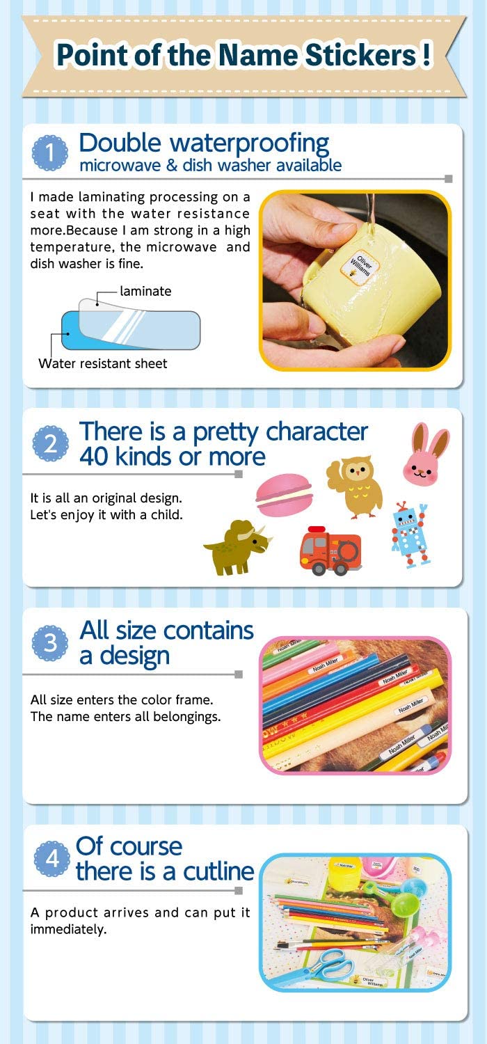 Writing names on children’s belongings one by one can be very tiring, but with stickers, it’s so easy to just stick them on!