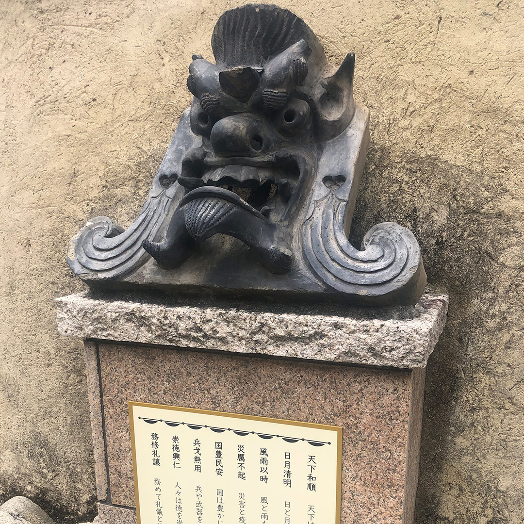 Onigawara have the role of warding off evil spirits, and they were installed with the hope that people would stroll through the town and drive away evil spirits.