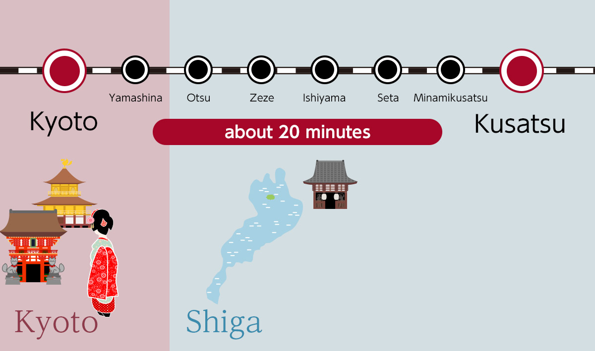 Kusatsu Station is about 20 minutes by train from Kyoto, a popular tourist area in Japan.