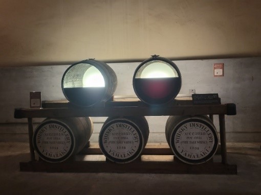 At first, visitors will learn about the production process of Yamazaki whisky using a miniature model.
