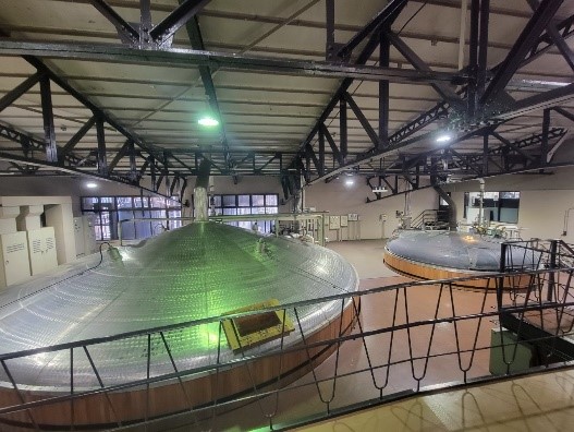 Inside the room where the whisky preparation tanks are located, the distinctive aroma of wort is in the air.