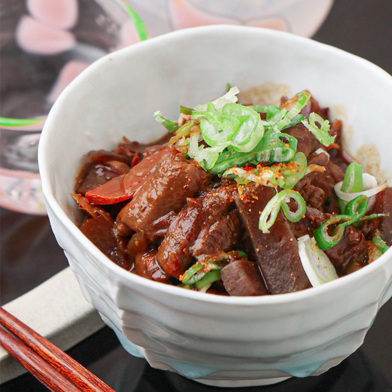 This dish is made by stewing pork or beef offal with Hatcho miso. It is rich and goes very well with beer.