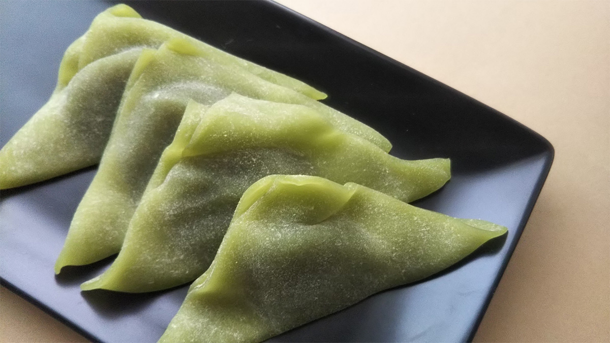 Matcha-flavored rice cake wrapped in matcha bean paste and topped with kinako (soybean flour).