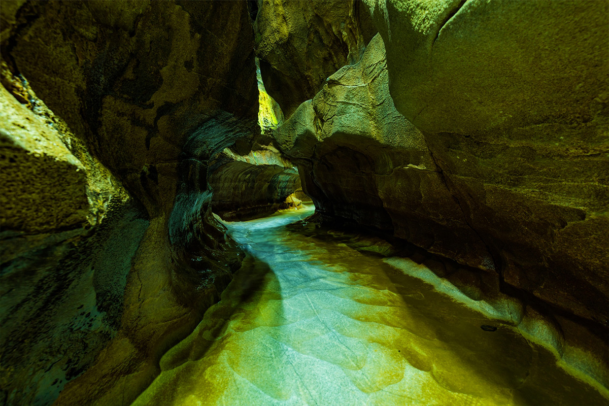 From the point about 480 meters from the entrance, the path is like a creek, and you walk along the river, jabbing and jabbing.